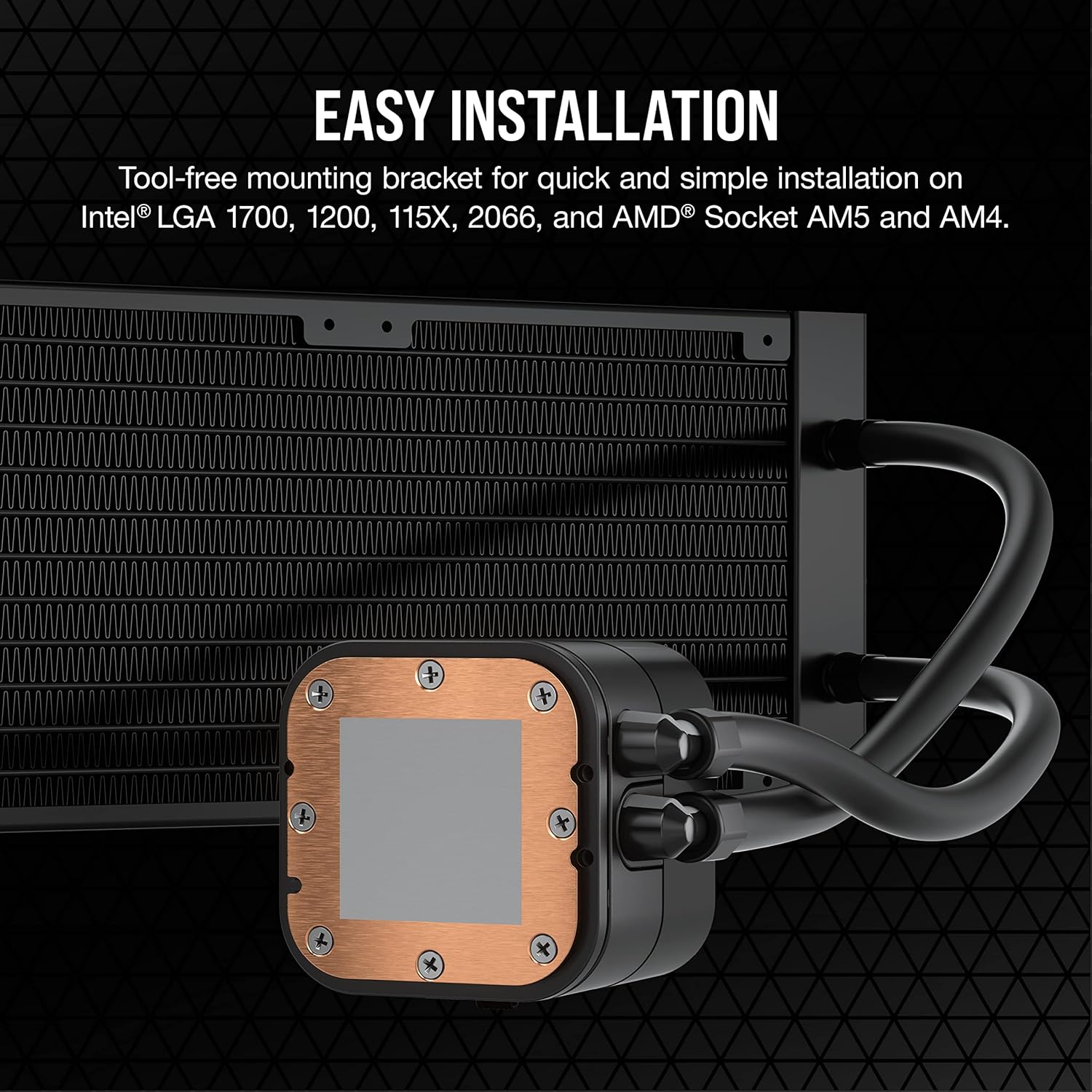 Corsair H100x RGB Elite Liquid CPU Cooler (CW-9060065-WW2) for Desktop-32 Dynamic LEDs SP120 Series PWM Fans with AirGuide Intel® LGA 1700, 1200, 115X, 2066, AMD® AM5/AM4 Sockets Black