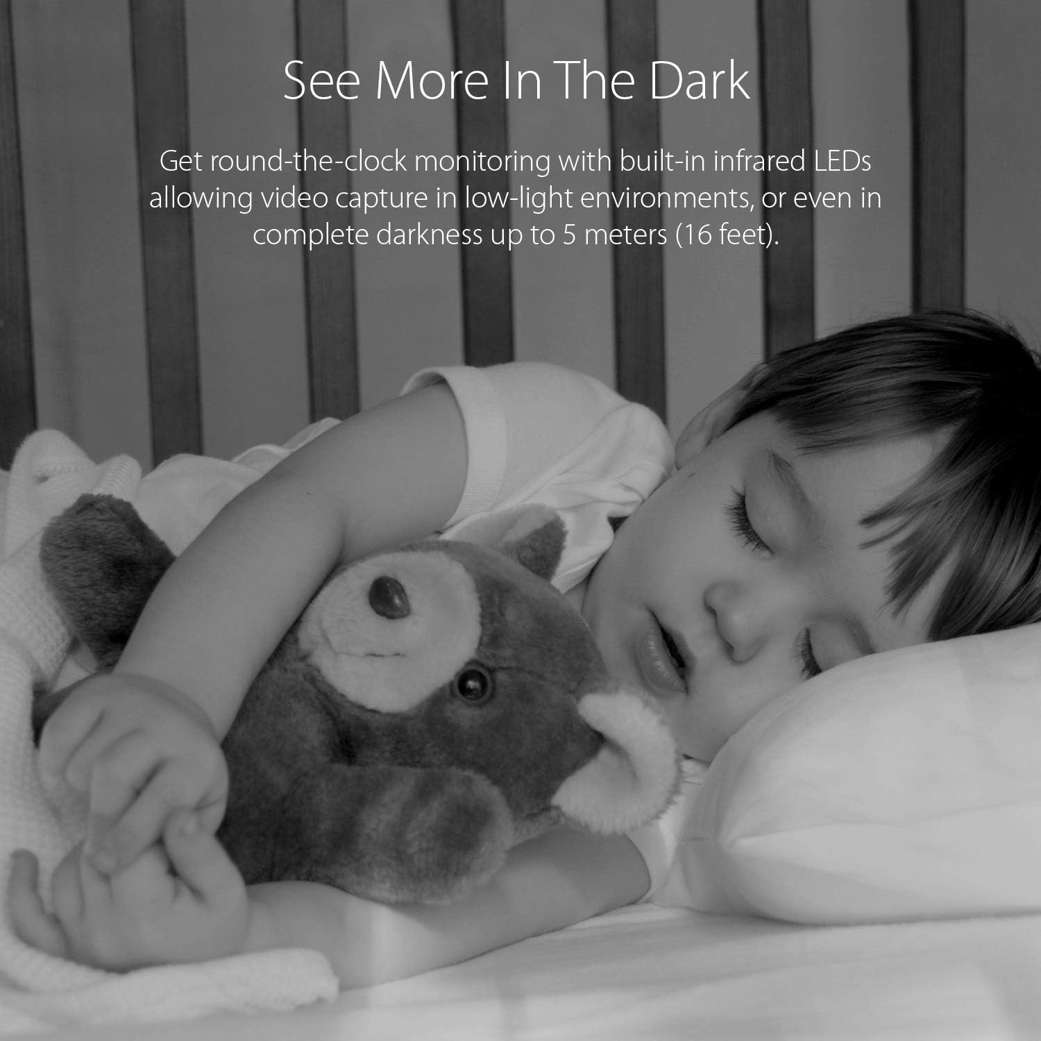- [24/7 Smart Alerts] Stay informed with automatic push alert notifications whenever sound or motion is detected even in up to 16 feet of total darkness