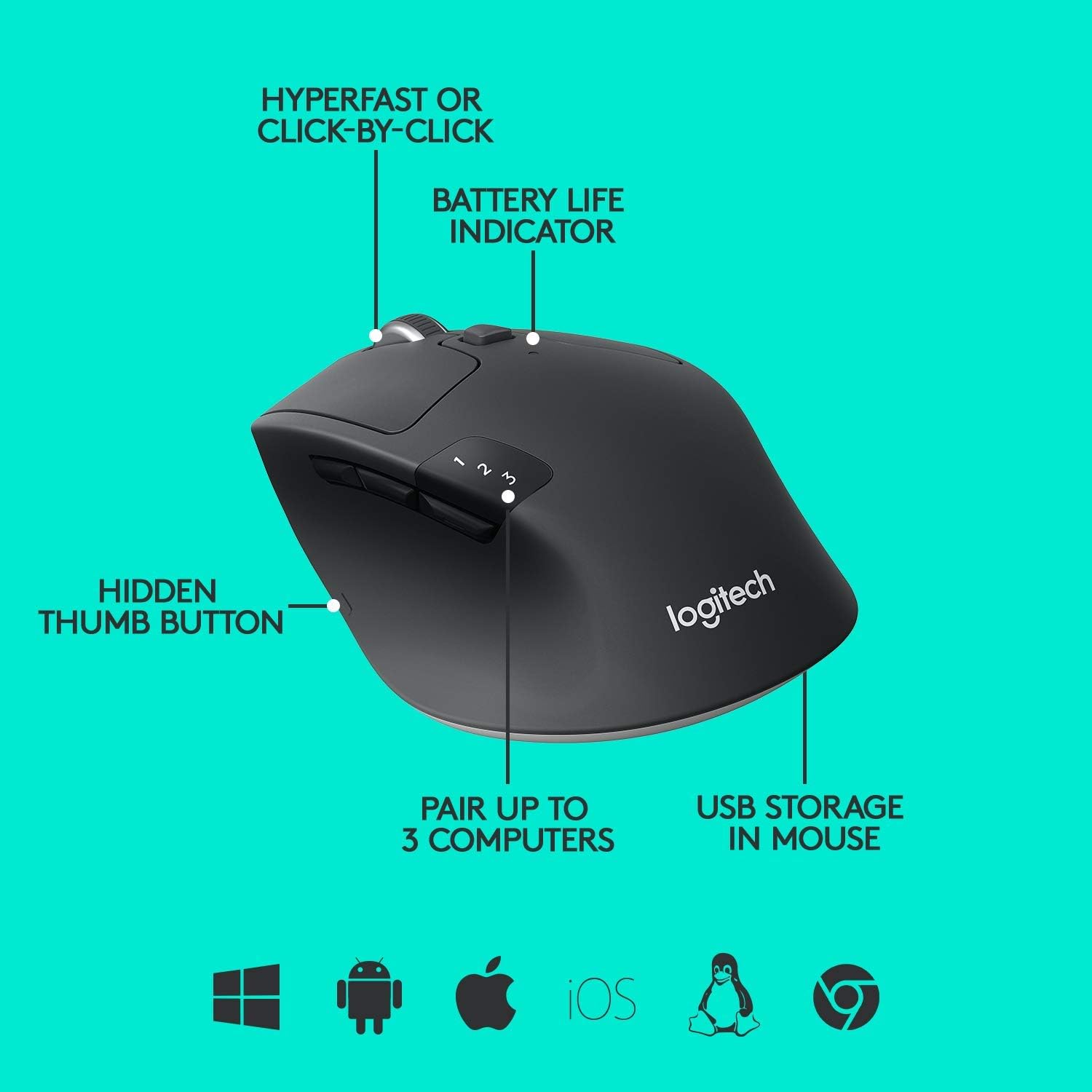 - Pair M720 Triathlon with up to 3 computers and seamlessly switch between them at the touch of a button thanks to Easy-Switch technology.